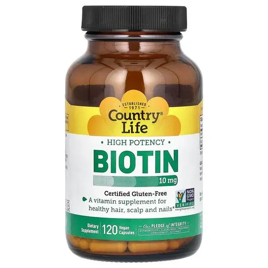Country Life, Biotin High Potency 10 mg, Вітамін B7 Біотин, 120 капсул