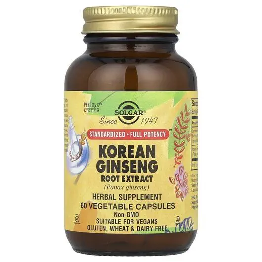 Solgar, Korean Ginseng, Женьшень, 60 капсул