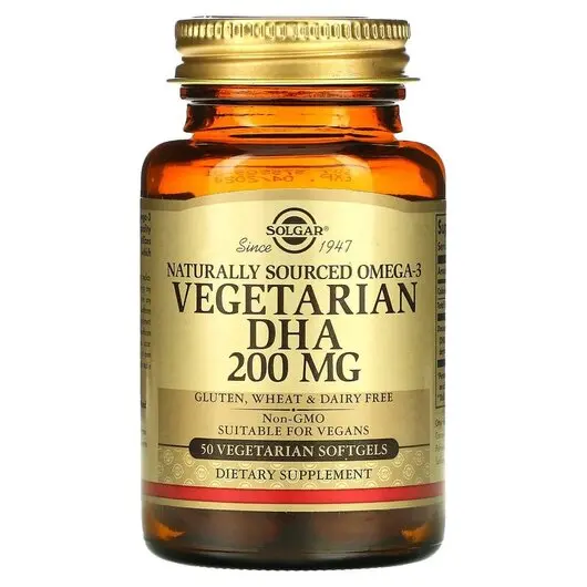 Solgar, Omega-3 Vegetarian DHA 200 mg, Омега-3 DHA 200 мг, 50 капсул