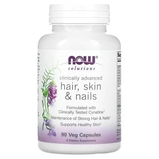 Клінічна формула для догляду за волоссям, шкірою та нігтями від NOW Solutions. Цей продукт містить Cynatine HNS, революційну запатентовану та біодоступну форму розчинного кератину, яка сприяє комплексній підтримці здоров'я волосся та нігтів. Cynatine HNS також може допомогти шкірі зберегти свої молодість, водний баланс та еластичність, а також прибрати вікові зморшки, поява яких повязана з вільними радикалами. Цей продукт також має найважливіші поживні речовини, необхідні для підтримки здорового та молодого вигляду шкіри.