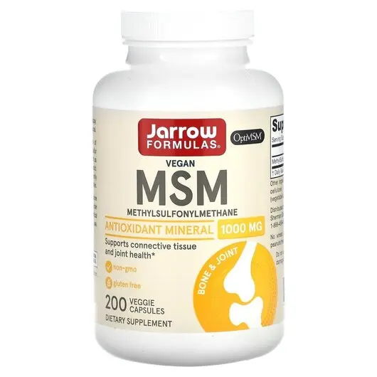 MSM від Jarrow Formulas - це органічний джерело біодоступної сірки. Сірка - це антиоксидантний мікроелемент, який міститься в основних структурних тканинах організму, а саме від хрящі. Сірка, джерелом якої є ЧСЧ, міститься в тканинах суглобів у вигляді глікозаміногліканів (або мукополісахаридів), таких як хондроїтинсульфат, сульфат дерматану та гіалуронова кислота. Ці сірковмісні глікозаміноглікани містяться у високій концентрації в сполучних тканинах, зокрема в суглобовому хрящі, шкірі та колагені.