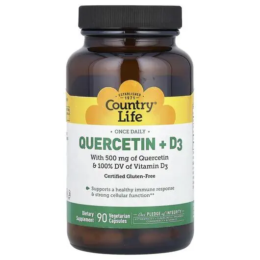 Country Life, Quercetin + D3, Кверцетин + D3, 90 капсул