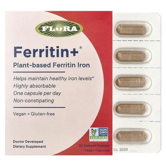 Flora, Ferritin+ Plant-Based, Залізо, 30 капсул