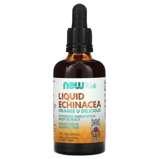 NOW Kid's Liquid Echinacea містить екстракт кореня ехінацеї, що містить повний спектр активних речовин, включаючи природний ехінакозид. Це безалкогольна травяна добавка з чудовим апельсиново-ванільним смаком, підсолоджена монахськими фруктами, яка сподобається дітям!