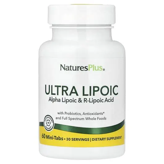 Мінітаблетки з ультраліпоєвою кислотою від Nature's Plus містять 500 мг альфа-ліпоєвої кислоти, яка доповнена 100 мг R-ліпоєвої кислоти для забезпечення антиоксидантної та антивікової поживної підтримки для всього організму. Альфа-ліпоєва кислота є головним омолоджувальним антиоксидантом для найширшого кола тканин. Доведена її ефективність у «високоенергетичних» тканинах, як-от серце, мозок, нирки, нерви та мязи, а також у «низькоенергетичних» тканинах, як-от клітини крові, сполучна тканина та ендотелій. Альфа-ліпоєва кислота є цілісним антиоксидантом для всього організму.