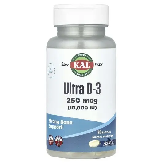 KAL, Ultra D-3 250 mcg, Ультра D-3 10000 МО, 90 капсул