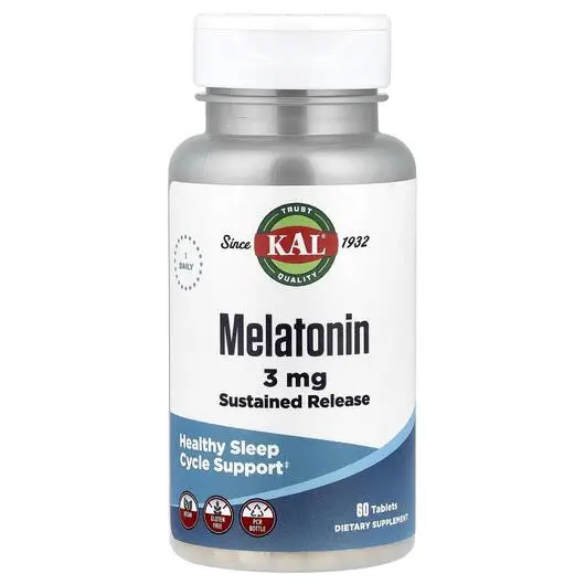 Основне фото товара KAL, Melatonin SR, Мелатонін + B6 3 мг, 60 таблеток