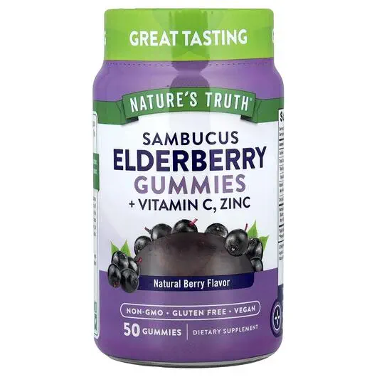 Nature's Truth, Sambucus Black Elderberry, Бузина, 50 цукерок