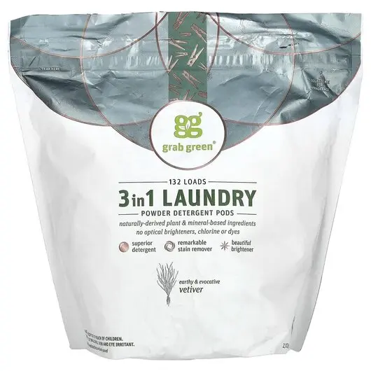 3 in 1 Laundry Detergent Pods Vetiver132 Loads, Пральний порошок, 2376 г