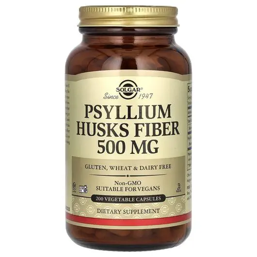 Solgar, Psyllium Husks Fiber 500 mg, Псиліум 500 мг, 200 капсул