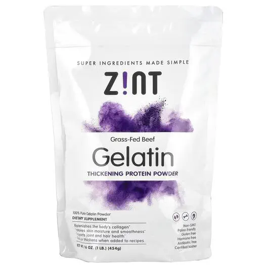 Відновлювач молодості! Zint elatin омолоджує вашу красу та молодість зсередини. Поповнюючи зменшений запас колагену у вашому організмі, він зміцнює ваше волосся та відновлює зволоженість і гладкість вашої шкіри для більш молодого кольору обличчя. Він також відновлює еластичність ваших суглобів для безтурботних рухів і активності, живлячи сполучну тканину вашого тіла, включаючи хрящі та сухожилля. Відмінність Zint: ми отримуємо наш желатин з худоби без ГМО, яка вирощується на пасовищі в Аргентині, працює виключно з постачальниками, які віддані принципам чистого, етичного землеробства. Наш повністю натуральний підхід не тільки забезпечує першокласний продукт з яловичим колагеном як за поживністю, так і на смак, він допомагає підтримувати здорове, стійке постачання їжі для майбутніх поколінь.