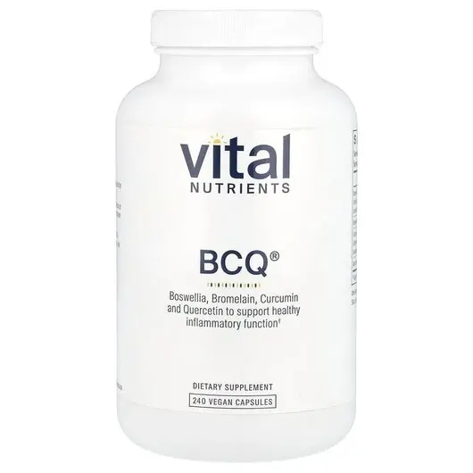 BCQ поєднує екстракти босвелії та куркуміну з кверцетином, потужним флавоноїдом, і бромелайном, протеолітичним ферментом, отриманим із рослини ананаса. Ця потужна формула містить антиоксиданти та може допомогти знизити рівень речовини P в організмі. Крім того, BCQ підтримує здорову запальну реакцію, що може допомогти зменшити незначний біль. Також відомо, що поживні речовини в цій унікальній формулі підтримують роботу шлунково-кишкового тракту та допомагають підтримувати здорову сполучну тканину.