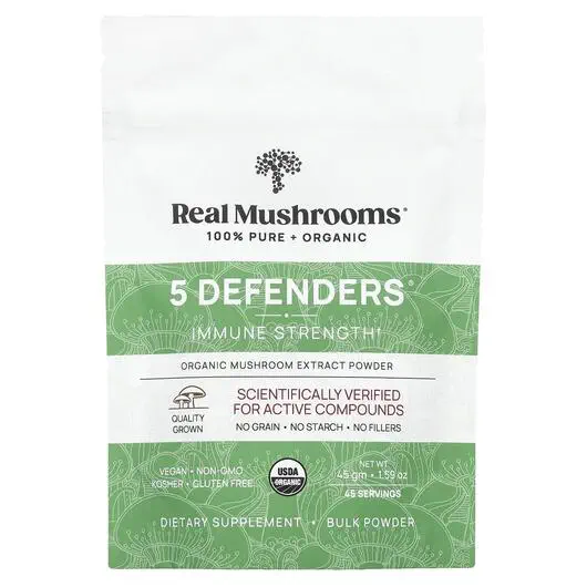 Real Mushrooms, Organic 5 Defenders Immune Strength, Гриби, 45 г