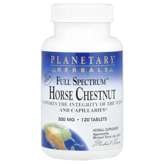 Майже невідомий в Америці екстракт кінського каштана є основним продуктом європейського травництва. Кінський каштан багатий на сапоніни та флавони, які, як показали сучасні дослідження, допомагають підтримувати нормальну цілісність судинної системи та сполучної тканини. Planetary Herbals Full Spectrum Horse Chestnut містить мінімум 20% есцину, основного компонента кінського каштана для забезпечення ефективності.
