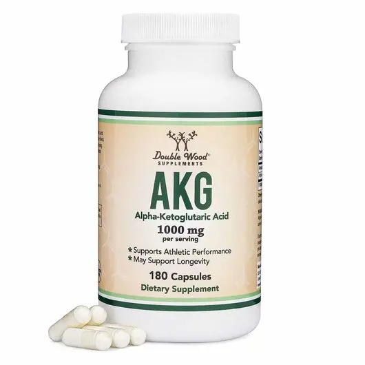AKG (Альфа-кетоглутарова кислота) (Альфа-кетоглутарат) — це кетонова похідна глутарової кислоти, яка природним чином міститься в організмі людини. Його не слід плутати з AAKG, який є комбінацією аргініну та альфа-кетоглутарату. Останнім часом AKG став обєктом багатьох досліджень старіння, оскільки він може діяти як попередник як для аргініну, так і для оксиду азоту і може бути ефективнішим, ніж AAKG. Він виконує низку функцій, зокрема діючи як проміжний етап у циклі Кребса, допомагаючи формуванню амінокислоти, що транспортують азот і діють як антиоксидант. Хоча AKG відіграє багато ролей в організмі, його зазвичай додають спортсмени для підтримки спортивних результатів і як добавку для підтримки здорового старіння. Ця функція була встановлена в багатьох дослідженнях на тваринах, але ще не було проведено жодних випробувань на людях, щоб перевірити, чи ця користь також справедлива для людей. AKG від Double Wood виробляється в США, не містить ГМО та не містить глютену. Він містить 180 капсул, і кожна порція складається з двох капсул по 500 мг (1000 мг). Цього достатньо AKG, щоб витримати три повних місяці, якщо приймати щодня.