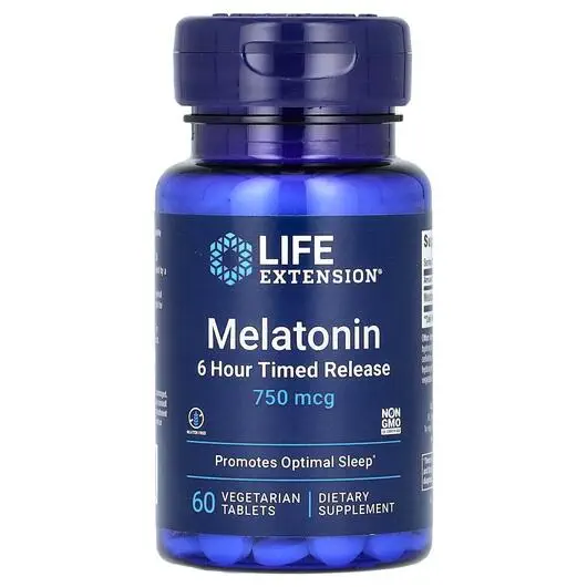 Melatonin 6 Hour Timed Release, Мелатонін 750 мкг, 60 таблеток