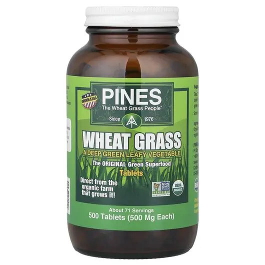 Organic Wheat Grass Pines вирощується лише на льодовикових ґрунтах без зрошення. У холодні місяці дозріває повільно. Низькі температури вночі та холодні дні перетворюють місяці повного сонячного світла на пирій із найпоживнішими речовинами. (таблетки містять 98% пирію.)
