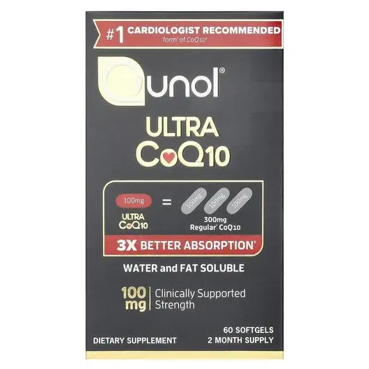 Qunol, Ultra CoQ10 100 mg, Коензим CoQ10, 60 капсул