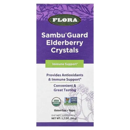 Органічні кристали бузини Sambu Guard від Flora забезпечують сплеск антиоксидантів і підтримку імунітету, коли виникають сезонні проблеми. Кристали бузини Sambu Guard можна приймати щодня для підтримки здорової імунної системи або при перших ознаках сезонних симптомів.