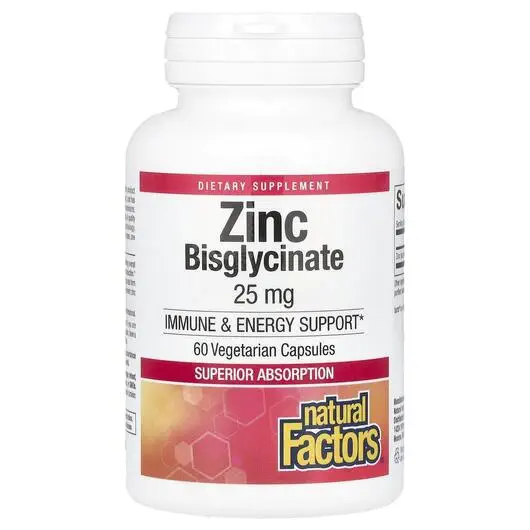 Natural Factors, Zinc Bisglycinate 25 mg, Цинк Бісгліцинат, 60 капсул