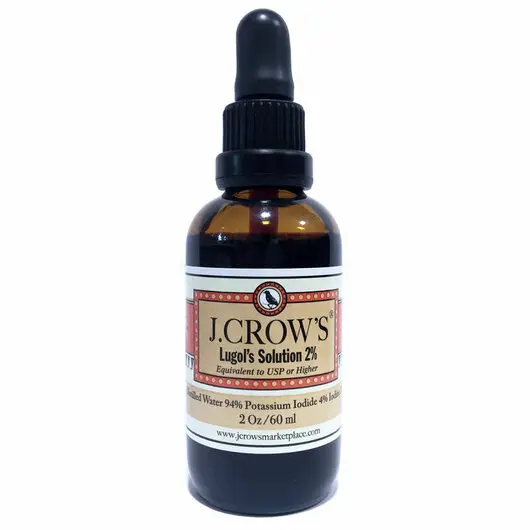 Еквівалент USP або вище 2 унції пляшки-крапельниці БЕЗКОШТОВНА ДОСТАВКА! (США) Розрахунок кількості МГ йоду та йодиду на краплю 2% розчину Люголя: кожна ВЕРТИКАЛЬНА «метрична» крапля (= 1/20 мл) містить приблизно 1,0 мг йоду та 2,0 мг йодиду калію. Частка йодиду йодиду калію становить близько 75%, тобто 1,5 мг. Таким чином, загальний йод плюс йодид становить 1,0 + 1,5 = 2,5 мг, а 2 краплі становлять приблизно 5,0 мг йоду/йодиду (2,0 мг йоду, 3,0 мг йодиду). У порівнянні з таблетками йоду та калію йодиду, J.CROW'S Lugol's Solution забезпечує велику економію. Приблизно 1200 вертикальних крапель на 2 унції. контейнер. Щоб використовувати як засіб для очищення води, додайте 3-6 крапель на літр води. Виготовлений із першокласних інгредієнтів, йод, який використовується в J.CROW'S Lugol' s Розчин отримують із кристалів, видобутих із природних розсолів віком 320 мільйонів років на двох милях під земною поверхнею на заході США (одне з небагатьох місць у світі, де існують такі поклади). Не виготовляється з молюсків. Використовувана чиста дистильована джерельна вода Нью-Гемпшира. Завжди свіжий. Термін дії не закінчується. Зберігати при кімнатній температурі, подалі від прямих сонячних променів. Охолоджувати не потрібно. Бути обережним. Не приймати заміни. Тримайте під рукою розчин Люголя J.CROW'S йоду. Найкращий продавець №1. Надійний оригінал з 1829 року. Перевірено низький рівень важких металів. Джерело США. Зберігати при кімнатній температурі, подалі від прямих сонячних променів. Охолоджувати не потрібно. Бути обережним. Не приймати заміни. Тримайте під рукою розчин Люголя J.CROW'S йоду. Найкращий продавець №1. Надійний оригінал з 1829 року. Перевірено низький рівень важких металів. Джерело США. Зберігати при кімнатній температурі, подалі від прямих сонячних променів. Охолоджувати не потрібно. Бути обережним. Не приймати заміни. Тримайте під рукою розчин Люголя J.CROW'S йоду. Найкращий продавець №1. Надійний оригінал з 1829 року. Перевірено низький рівень важких металів. Джерело США