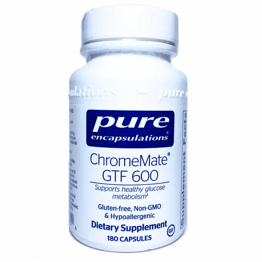 ChromeMate GTF 600 від є зручним джерелом хрому. Одна рослинна капсула містить 600 мкг полінікотинату хрому. Потенційні переваги цієї добавки для серцево-судинної системи максимізуються завдяки забезпеченню нікотинової кислоти, яка також відома як ніацин або вітамін B3.