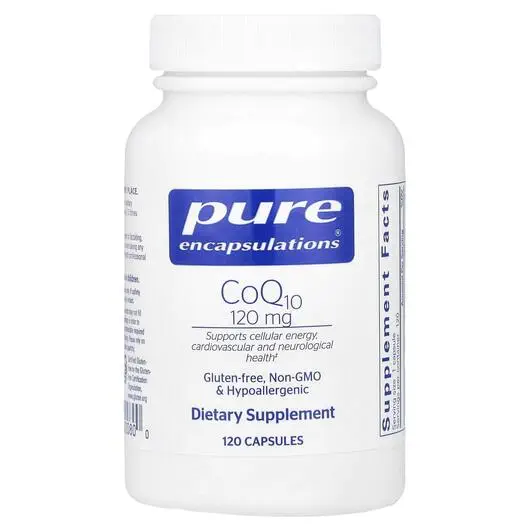 Основне фото товара Pure Encapsulations, CoQ10 120 mg, Коензим CoQ10, 120 капсул