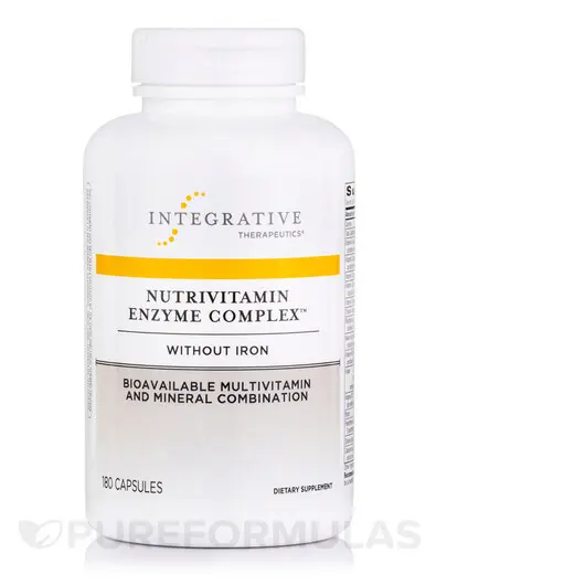 NutriVitamin Enzyme Complex без заліза - це полівітамінний/мінерал, що засвоюється, з пробіотиками та мікробними травними ферментами.