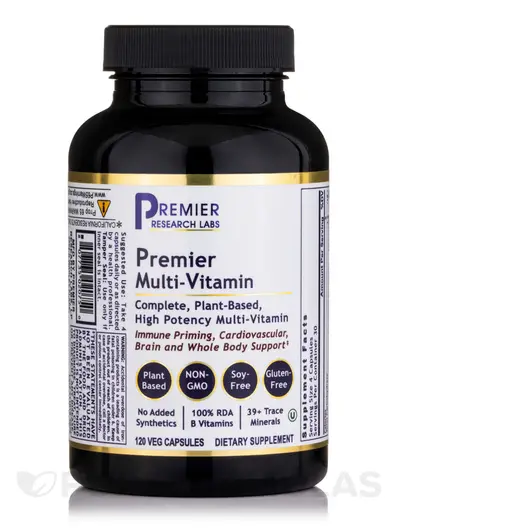 Дієтична добавка 120 капсул рослинного походження. Підтримка імунітету, мозку, серцево-судинної системи та всього організму Рослинні, органічні інгредієнти Пробіотичні ферментовані поживні речовини Пребіотики та постбіотики Бажані коферментні форми вітаміну B12 Premier Multi-Vitamin є повноцінним, вегетаріанським/ веганська суміш вітамінів і мінералів, що пропонує широкий спектр потужних і чистих природних фітонутрієнтів для підтримки ідеального клітинного резонансу органів і залоз організму. Розроблена, щоб надати вам повністю рослинні полівітаміни без синтетики для щоденного використання з максимальним використанням поживних речовин.