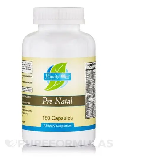 Priority One's Pre-Natal — це полівітамінна та мультимінеральна добавка, розроблена з урахуванням потреб вагітних жінок та їхніх ненароджених дітей.