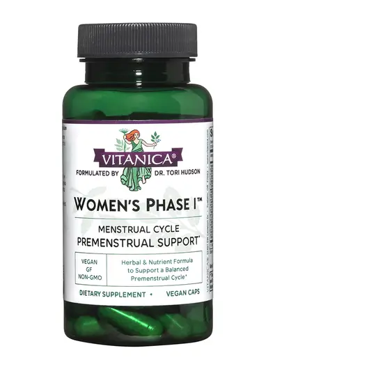 Жіноча фаза 1 від Vitanica містить інгредієнти, які допомагають полегшити симптоми передменструального синдрому: це трави, вітамін Е, вітамін В6, кальцій, йод, магній і хром. Ця добавка спеціально розроблена, щоб допомогти вашому організму впоратися з неприємними симптомами, викликаними під час передменструальної фази вашого місячного репродуктивного циклу. У поєднанні з великою кількістю рідини, збалансованою дієтою та регулярними фізичними вправами ці капсули можуть полегшити симптоми.