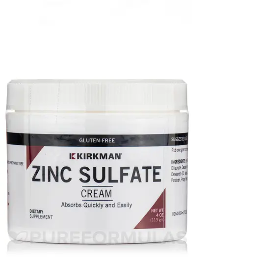 Кожна порція крему Kirkman's Zinc Sulfate Topical Cream містить еквівалент 22 міліграмів елементарного цинку. Цей цинковий крем особливо підходить для людей з чутливою шкірою, оскільки він не містить штучних барвників, а також алергенів, таких як глютен, арахіс або деревні горіхи.