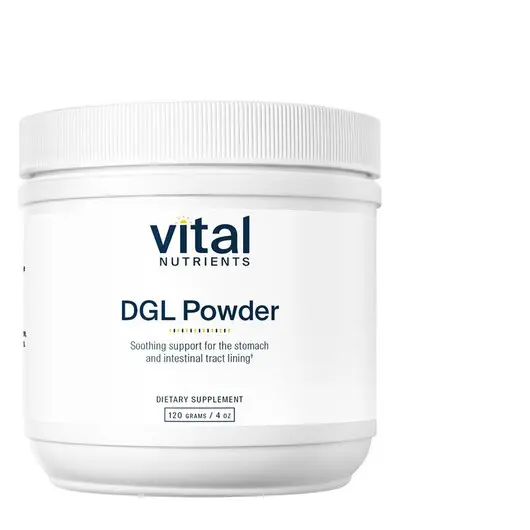 На жаль, важко зїсти достатню кількість солодки, щоб отримати терапевтичний ефект; він відносно калорійний і малопоживних речовин. Крім того, корінь солодки містить речовину під назвою гліциризин, яка може викликати незручні побічні ефекти, такі як здуття живота та затримка води. Порошок DGL від Vital Nutrients містить дегліциризований корінь солодки, що означає, що гліциризин видалено.