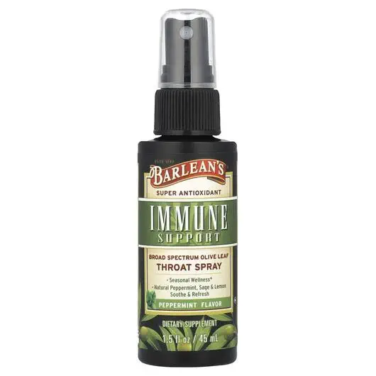 Спрей для горла Barlean Olive Leaf Complex – це суперантиоксидантний розчин для підтримки здорової функції імунної системи та сезонного самопочуття. Натуральна м'ята перцева, шавлія та лимон освіжають і заспокоюють горло.