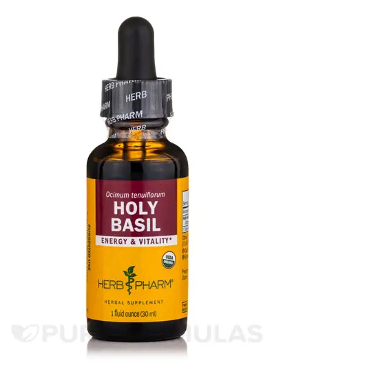Кожна пляшка екстракту святого базиліка від Herb Pharm містить одну рідку унцію розчину, який готується з висушених у тіні та органічно вирощених рослин базиліка.