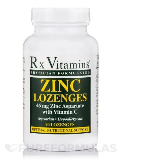 Rx Vitamins' Zinc Lozenges (46 мг аспартату цинку з вітаміном С) — це вегетаріанська, гіпоалергенна цинкова добавка, яка може підтримувати загальний стан здоров'я різними способами.
