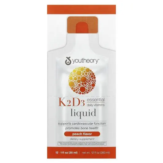 Youtheory, K2D3 On Th Go, Вітаміни D3 K2, 12 Packets 30 ml Each