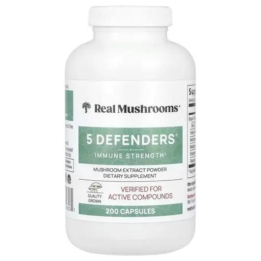Real Mushrooms, 5 Defenders Mushroom, Гриби, 200 капсул