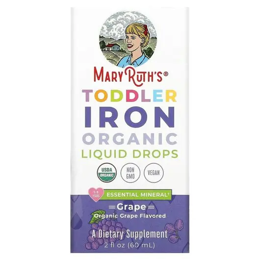 Toddler Iron Organic Liquid Drops 1-3 Years Grape, Залізо, 60 мл
