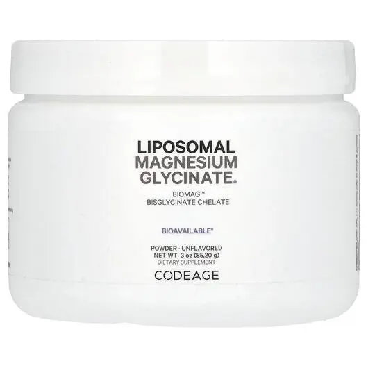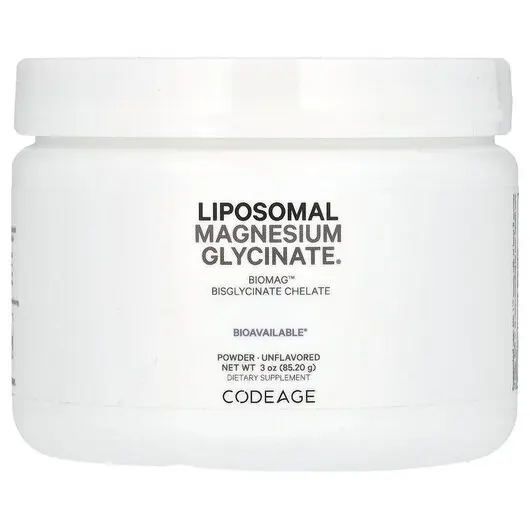 Порошкова добавка Codeage Liposomal Magnesium Glycinate містить 200 мг хелату магнію бісгліцинату TRAACS на порцію та поставляється з запасом на 2 місяці. Цей вдосконалений магнієвий порошок також містить ліпосомну доставку, що сприяє покращенню засвоєння та підтримує заспокійливий і розслаблюючий ефект.