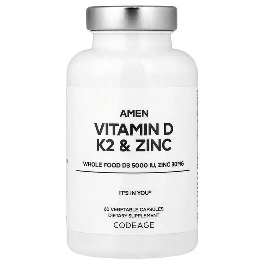 CodeAge, Amen Vitamin D K2 & Zinc, Вітаміни D3 K2, 60 капсул