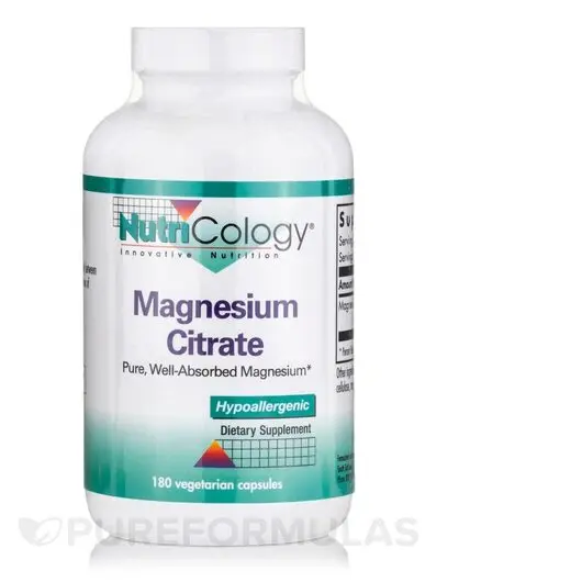 Nutricology, Magnesium Citrate, Магній, 180 капсул