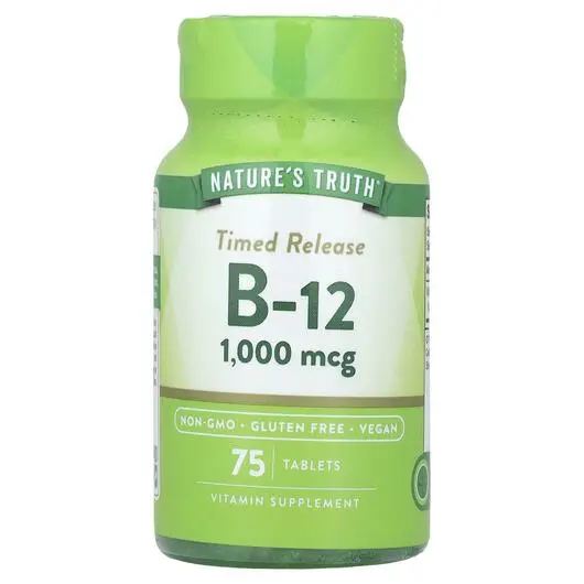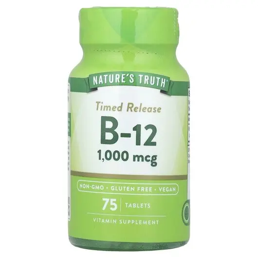 Вітамін B-12 — водорозчинний незамінний вітамін групи B, який природним чином міститься в різноманітних продуктах харчування, таких як риба, мясо, яйця та молочні продукти, і є підтримуючим доповненням до будь-якої процедури оздоровлення як для чоловіків, так і для жінок. На жаль, ми не завжди отримуємо потрібну нам кількість B-12 із щоденного раціону, і саме тут на допомогу приходять добавки. У Nature's Truth наша формула з тимчасовим вивільненням забезпечує вам 1000 мкг цього корисного вітаміну B на таблетку, що робить простіше, ніж будь-коли, додати цей необхідний оздоровчий засіб до свого розпорядку дня.