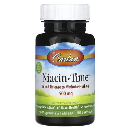 Carlson, Niacin-Time 500 mg, Вітамін B3 Ніацин, 50 таблеток