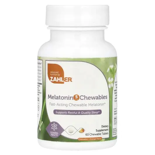 Мелатонін є природним засобом для сну, який мозок виробляє у відповідь на темряву. Zahler Melatonin Chewables містить 5 мг мелатоніну, який регулює сон, щоб допомогти підтримувати спокійний і якісний сон.