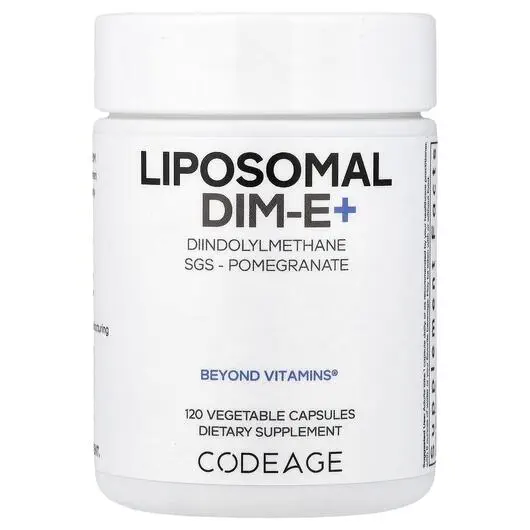 Ліпосомальна добавка Codeage Dim-E+ містить біодоступні DIM, SGS, ізомери вітаміну E, гранат і екстракт насіння броколі як джерело SGS (сульфорафан глюкозинолат). Цей тьмяний вітамін поставляється з ліпосомальною доставкою, що сприяє його біодоступності. DIM (дііндолілметан) може допомогти підтримувати гормональний баланс у жінок і чоловіків, сприяючи метаболізму естрогену та перетворенню андрогенів у менш активні форми.