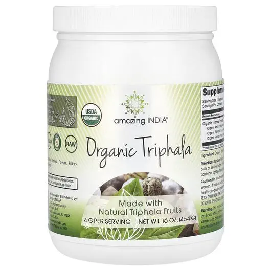 Дивовижна INDIA Organic Triphala виготовляється з комбінації трьох аюрведичних фруктів. Незважаючи на те, що трифала широко використовується як проносний засіб, вона також вважається потужним стимулятором організму, який допомагає зміцнити загальне здоров'я та благополуччя. Органічна трифала сприяє здоровю печінки, допомагаючи покращити детоксикацію небажаних сполук і підтримує здоровий кровообіг.