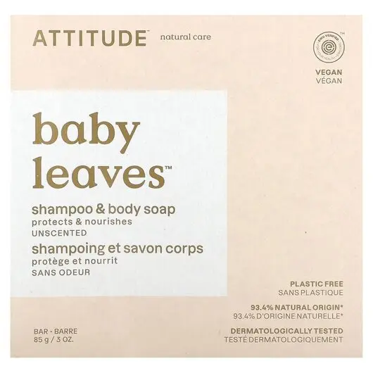 Baby Leaves Shampoo & Body Bar Soap Unscented, Шампунь для дітей, 85 г