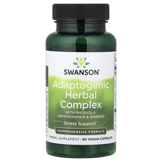 Подолайте наслідки стресу та відновіть баланс свого тіла за допомогою потужної суміші адаптогенних трав у адаптогенному травяному комплексі Swanson з родіолою, ашвагандою та женьшенем. Ця унікальна формула поєднує в собі девять найефективніших природних, перевірених часом травяних адаптогенів з усього світу для захисту та балансу різних систем органів, нормалізації функцій організму, на які впливає стрес, для сприяння оптимальній життєвій енергії.