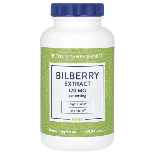Капсули екстракту чорниці бренду Vitamin Shoppe стандартизовані до 25% антоціанів, щоб сприяти гострому зору в будь-якому віці.